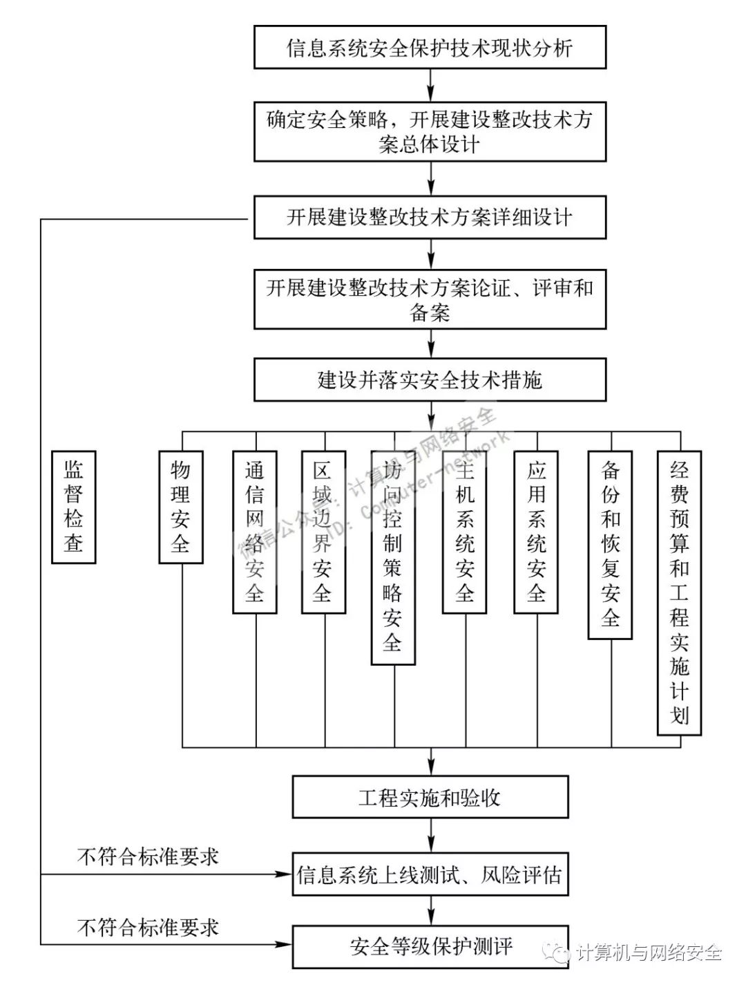按照《管理辦法》、《基本要求》,參照《實施指南》、《信息系統(tǒng)通用安全技術要求》、《信息系統(tǒng)安全工程管理要求》、《安全設計技術要求》等標準規(guī)范要求,建設信息系統(tǒng)安全保護技術措施。